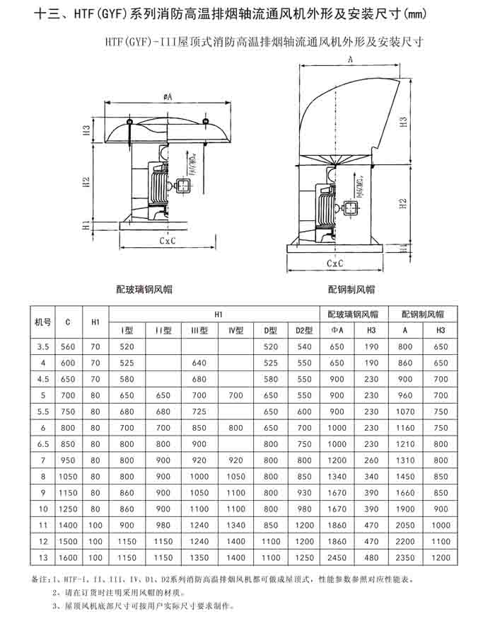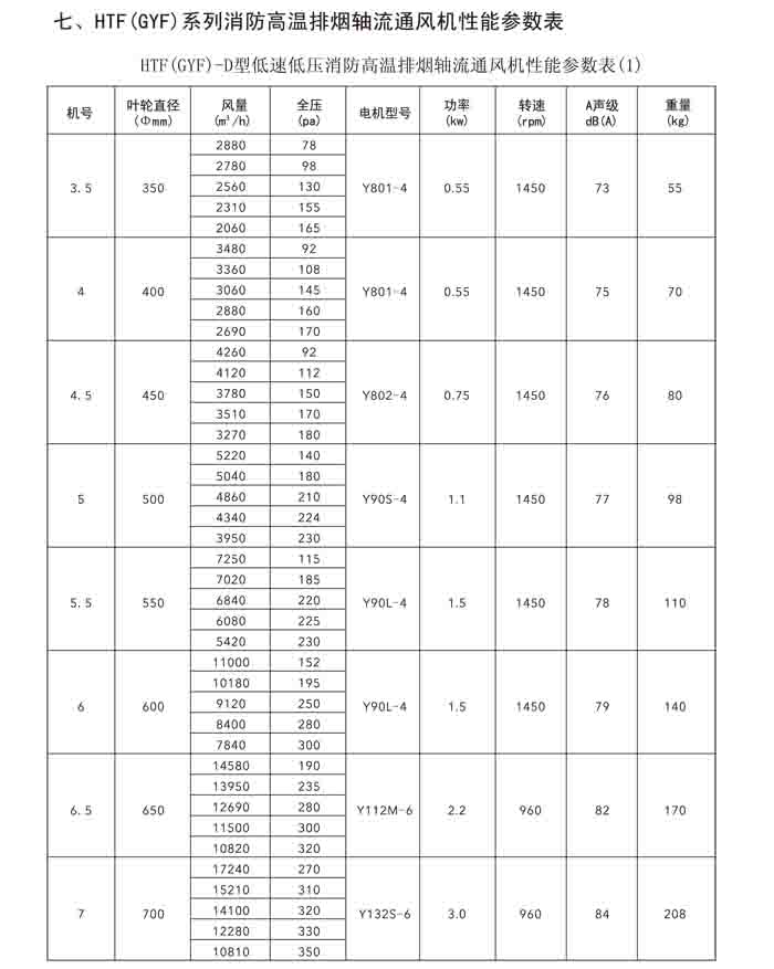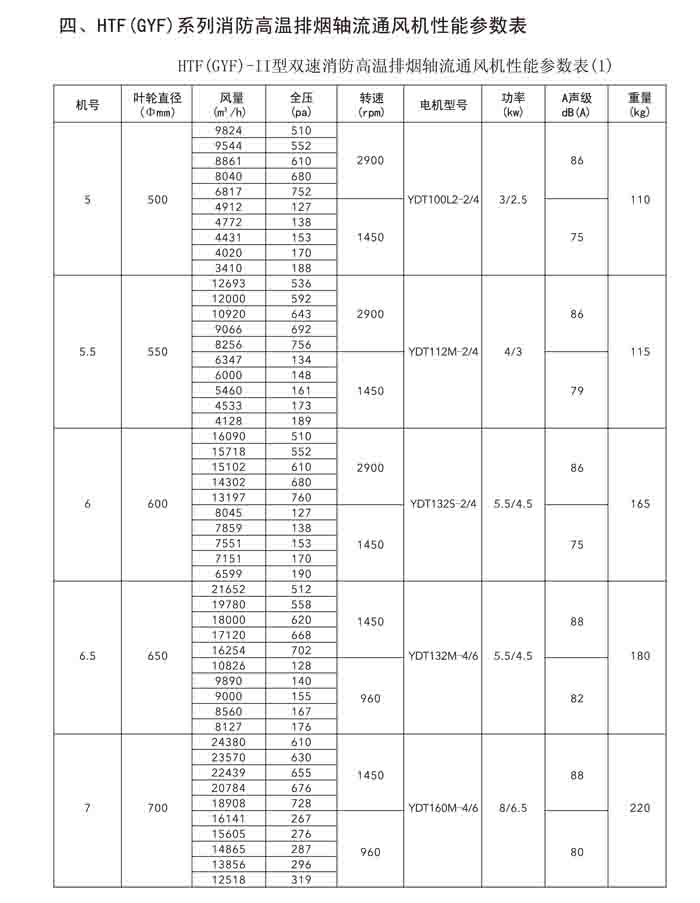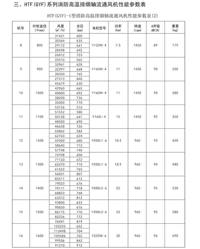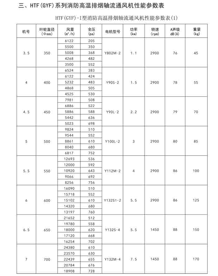 一、HTF(GYF)-I、II、III、D、G、IIG 系列消防排煙軸流風機