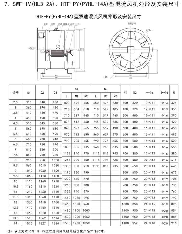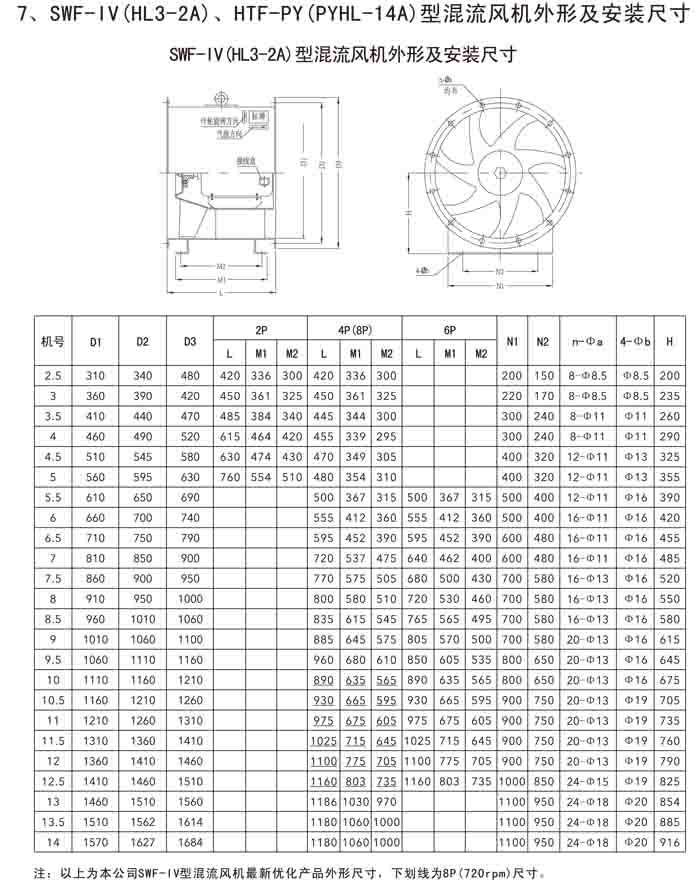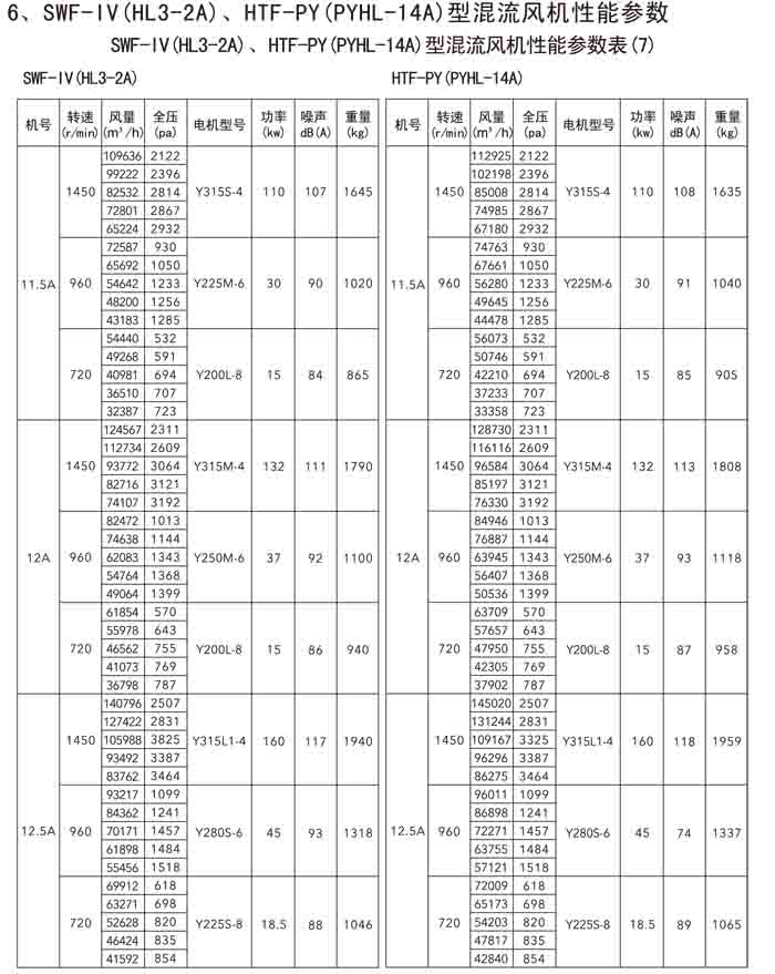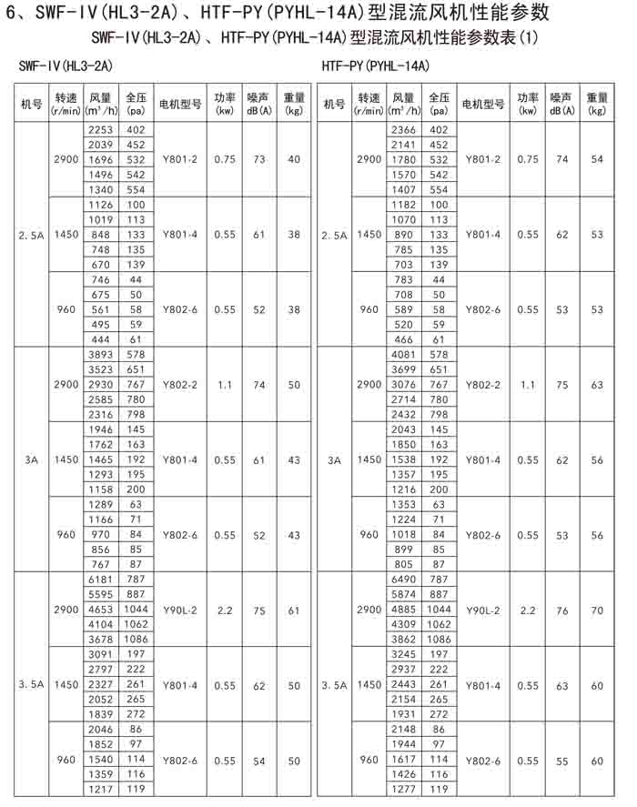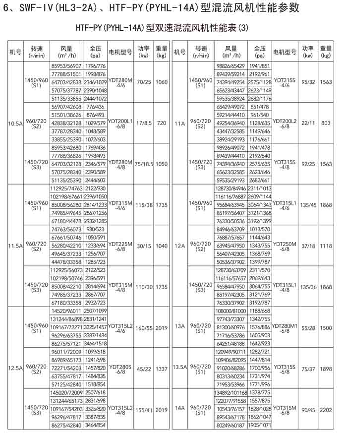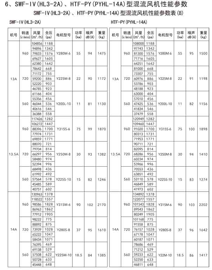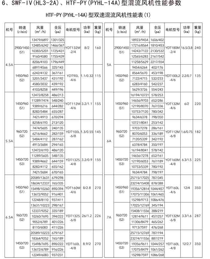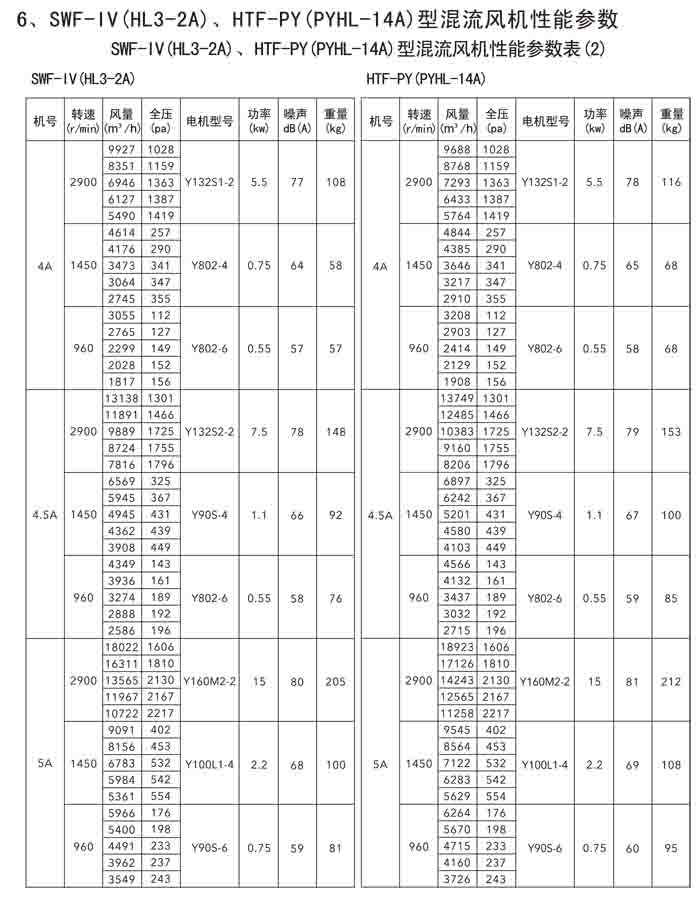三、SWF-IV(HL3-2A)、HTF-PY(PYHL-14A)系列節能混流風機