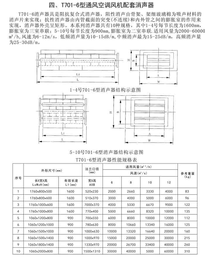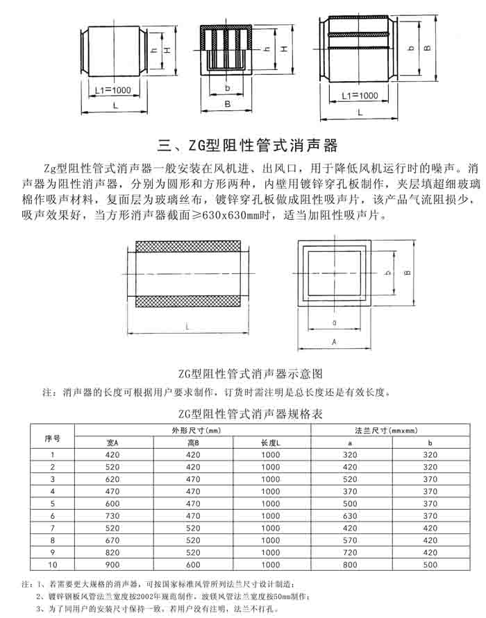 四、ZP、ZG、T701-6、WX 系列風機配套消聲器、ZJ靜壓箱